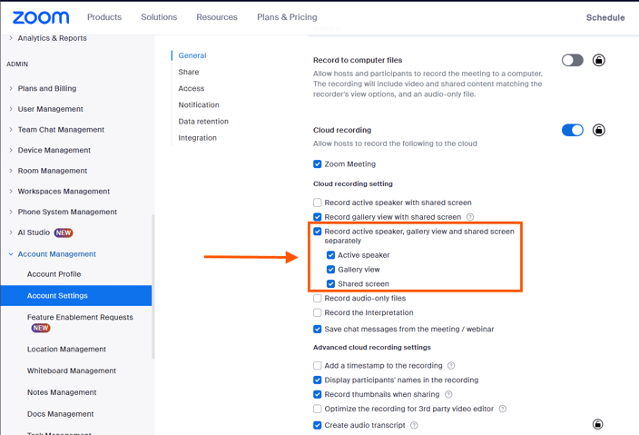 Step 1 - Enable 'Record active speaker, gallery view and shared screen separately'